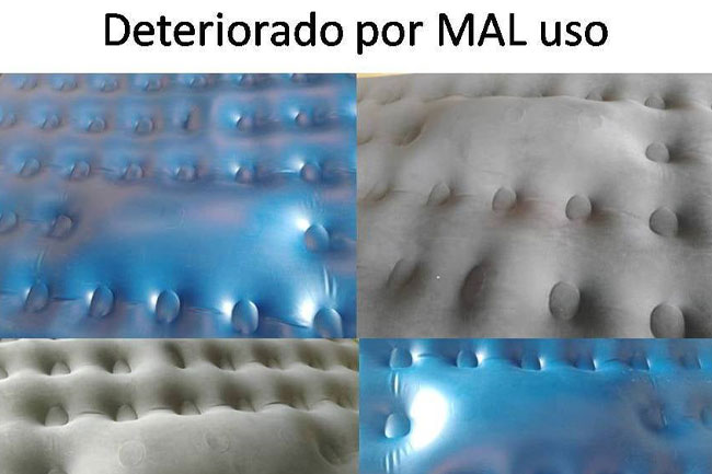 - Evitar que el ángulo de un mueble de camping o cualquier otro objeto que sobresalga se apoye en el colchón.